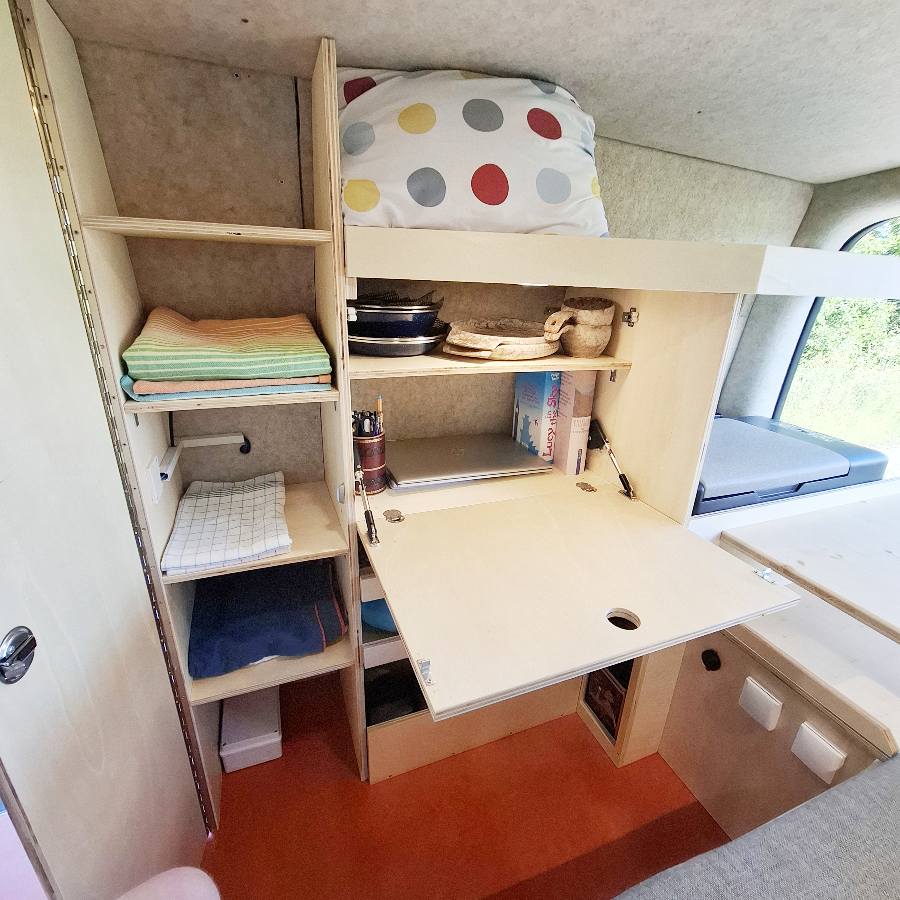 Der komplette Ausbau wurde mit naturbelassenem, geölten Pappelsperrholz umgesetzt.